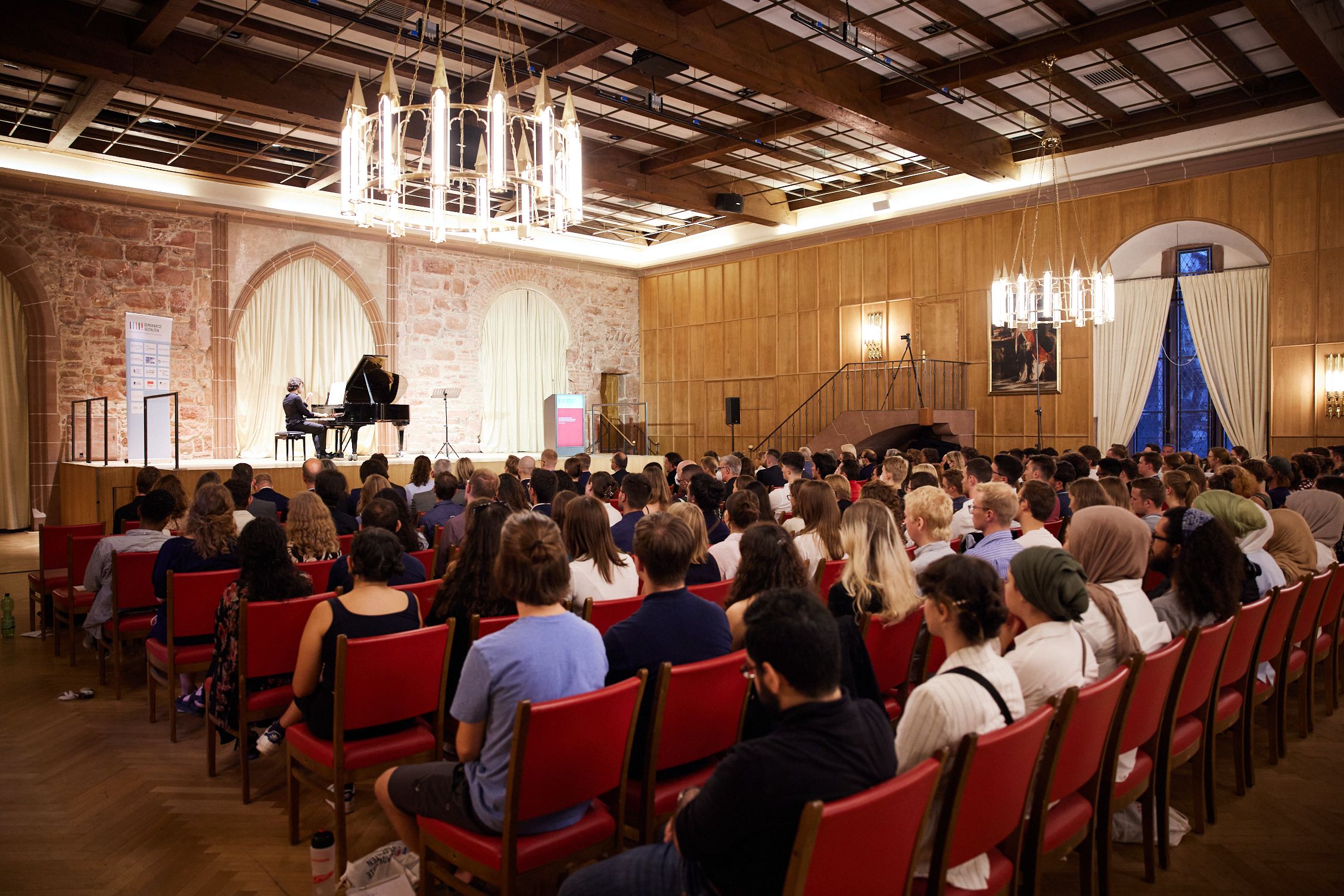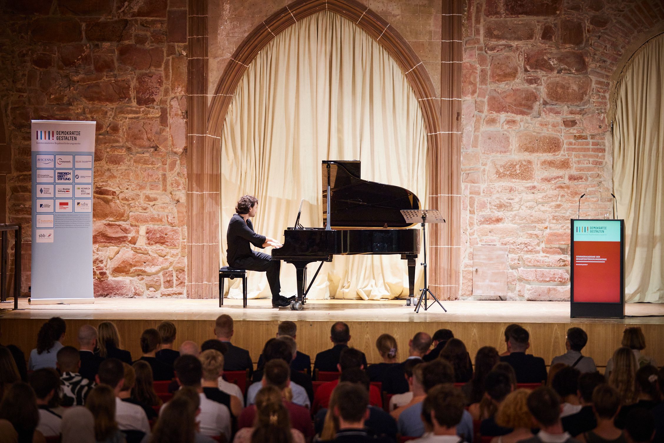 Cya Bazzaz, Stipendiat der Hans-Böckler-Stiftung, spielte auf der feierlichen Eröffnung der Sommerakademie der Begabtenförderungswerke am Klavier ‚Disruption‘: